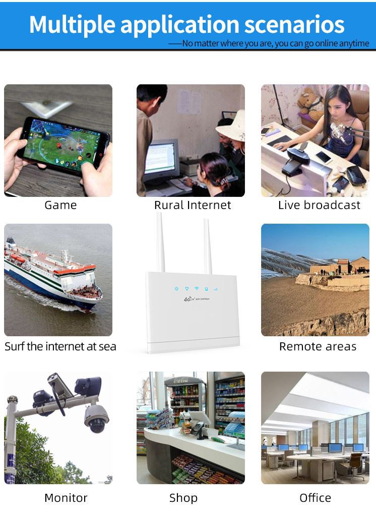 1. Rýchle internetové pripojenie s vloženou SIM kartou a 4G signál je možné previesť na Ethernet aj WiFi, ktoré poskytujú vysokú kvalitu dátových služieb a hlasových služieb.